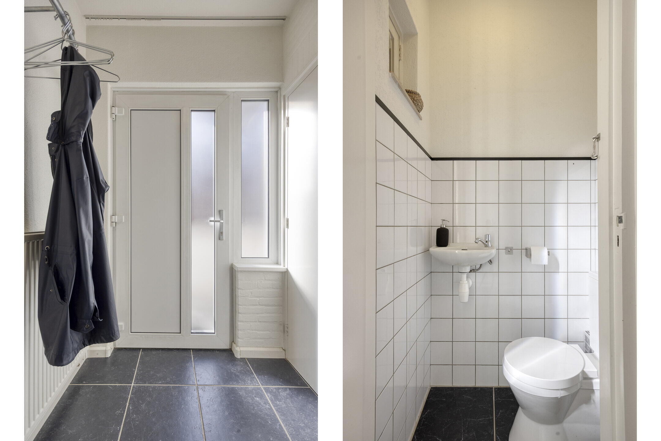 - Entree met meterkast en toiletruimte en trap naar verdieping;