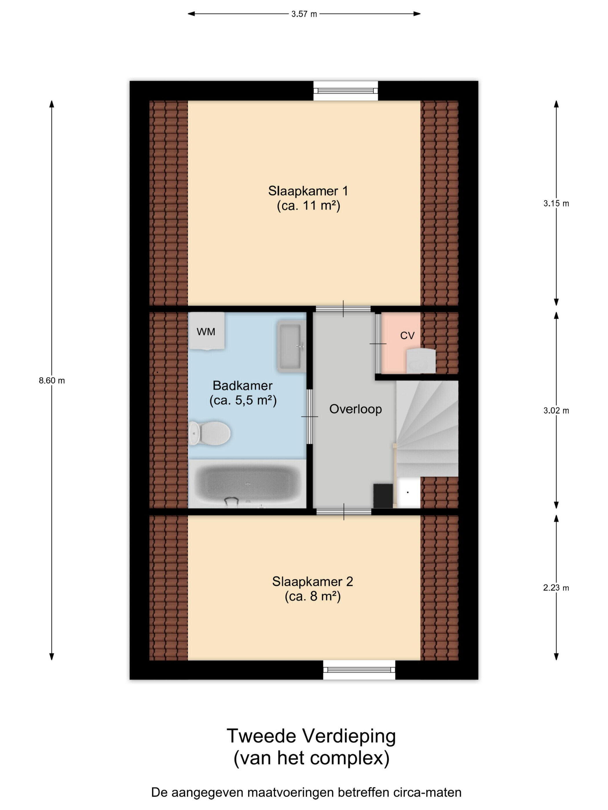 - Slaapkamer 2 (ca. 8 m²), gelegen aan de voorzijde;